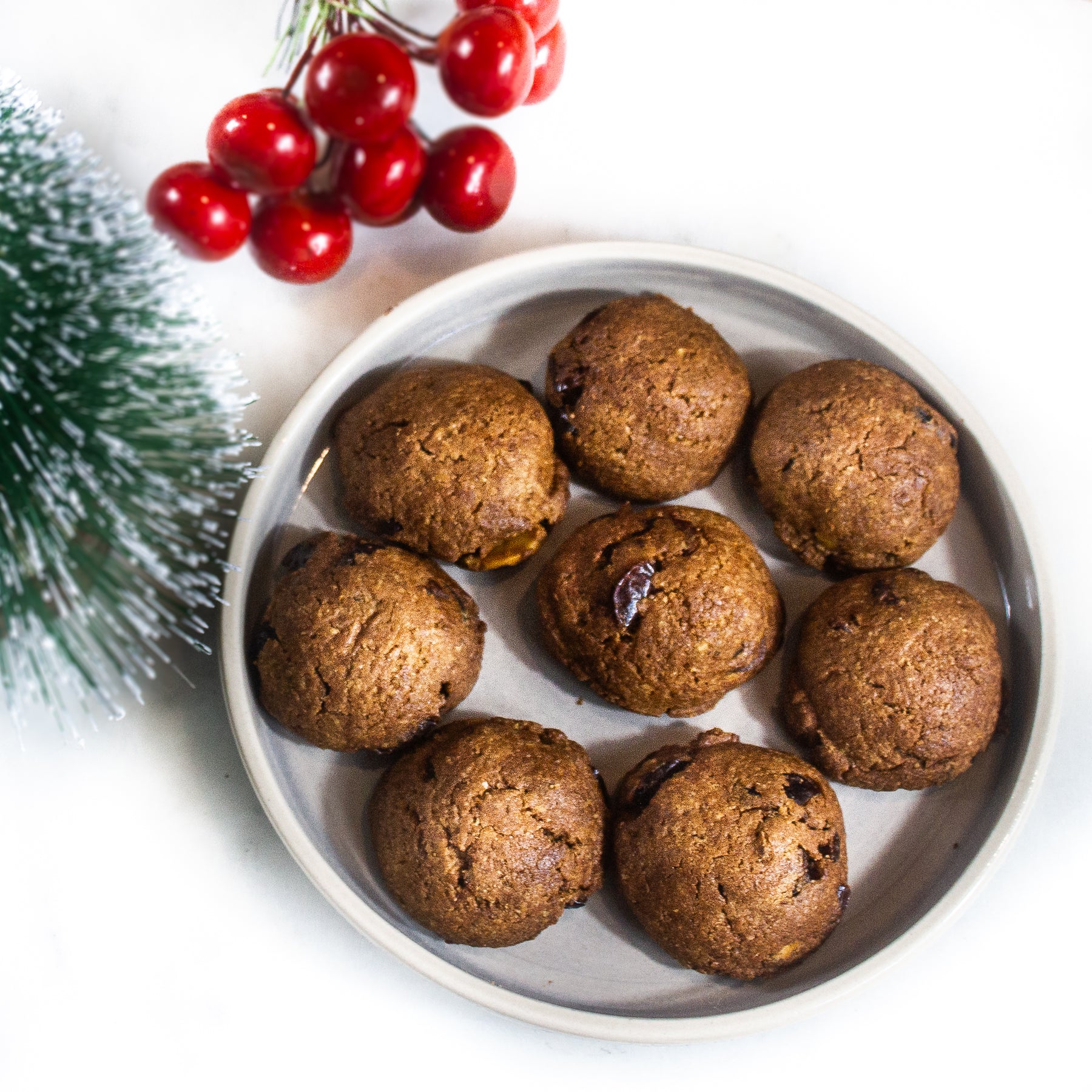 Ingredients: Certified Gluten Free Oat Flour, Pistachio, Olive Oil, Almond Meal, Coconut Sugar, Dried Cranberry, Flaxseed Meal, Baking Powder, Cinnamon, Vanilla Essence, Sea Salt.